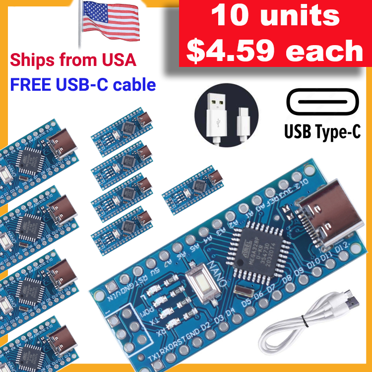 **NEW!** USB-C V3.0 ATMEGA328P CH340 Board COMPATIBLE WITH ARDUINO NANO IDE